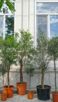 Depending on the pot you choose and the variety of olive trees, your plant can grow up to 2 metres tall. Olive trees should not be watered very often. Water until the soil is soaked, but not until the surface is 2-3cm dry.