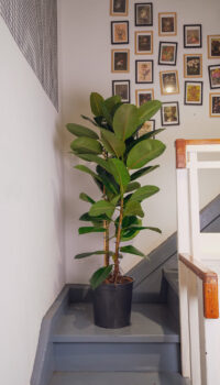 Thanks to its large, glossy leaves, the Ficus Elastica adds a sophisticated touch to any space. It enjoys bright light, but without direct sun exposure, and its leaves have the ability to purify the air. In its natural environment, it can grow impressively tall, but indoors it usually reaches 1.5–2 meters. If you want to see it grow healthy and happy, you can find all the care tips in the Plant Library.
