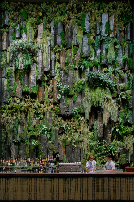 Идея этой концепции заключается в том, чтобы придать внутреннему пространству более тесную связь с природой, особенно в городских пространствах, чтобы мы могли быть более расслабленными, более общительными, более творческими и более человечными. Таким образом, от бетона отказываются и делают акцент на натуральных материалах и фактурах, узорах и формах, которые мы узнаем у природы, создавая рамки, имитирующие середину природы, естественное освещение и, конечно же, множество живых растений.