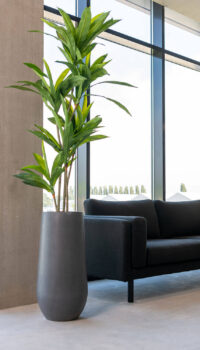 Amphora is inspired by ancient civilization and the Roman world – that’s why it’s particularly ‘at home’ with tall, shrubby plants with long flat or small leaves. And if you plant a dwarf olive or lemon tree in an Amfora pot, you’ll be delighted with how it looks.