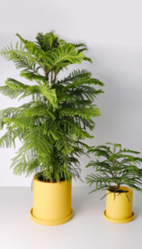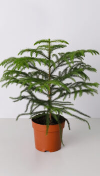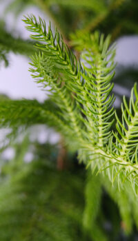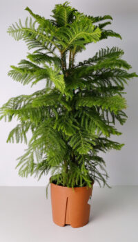 Араукария, известная как «Норфолкская сосна», родом из Южной Америки. В домашних условиях популярна разновидность Araucaria heterophylla с мягкими иголками и пирамидальной кроной. Некоторые предпочитают её вместо традиционной елки для украшения на Рождество. Условия ухода смотри в Библиотеке растений.
